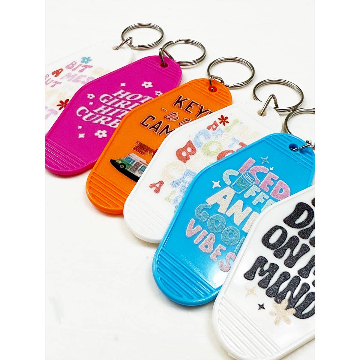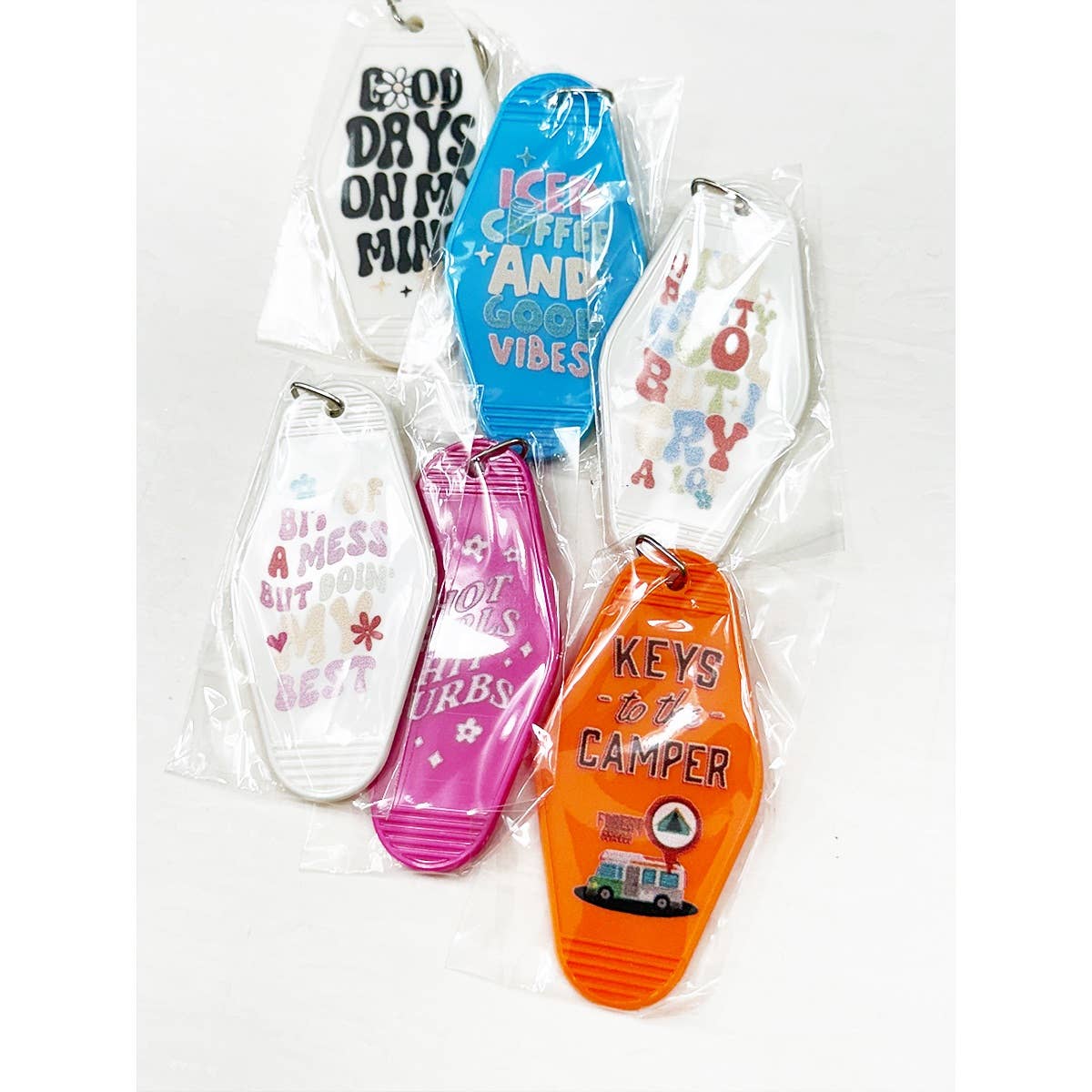 Inspired Vintage Hotel Motel Keychain Lifts and decor for every day and every occasion that encourage, resonate with and uplift the soul. -Dimension- 1.75 Inch W X 3.5 Inch L -6 Kinds Assorted