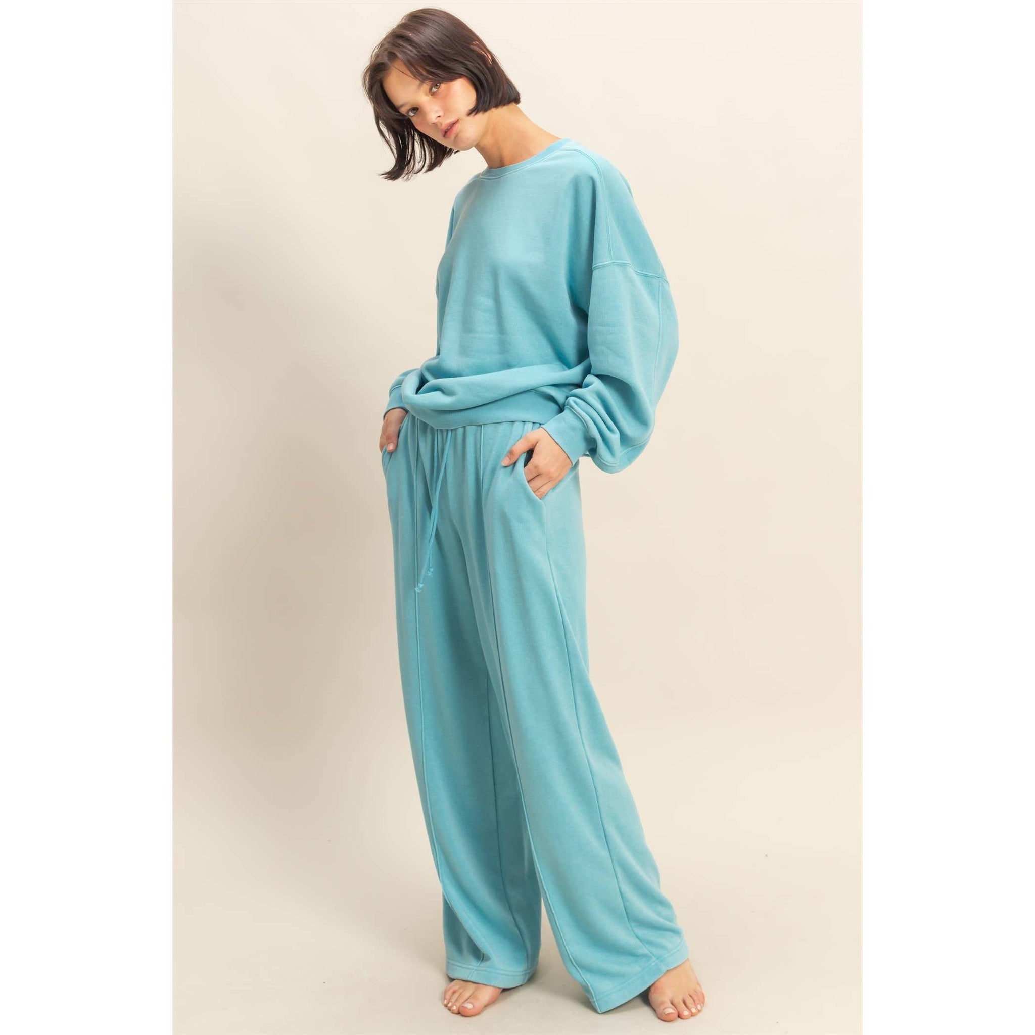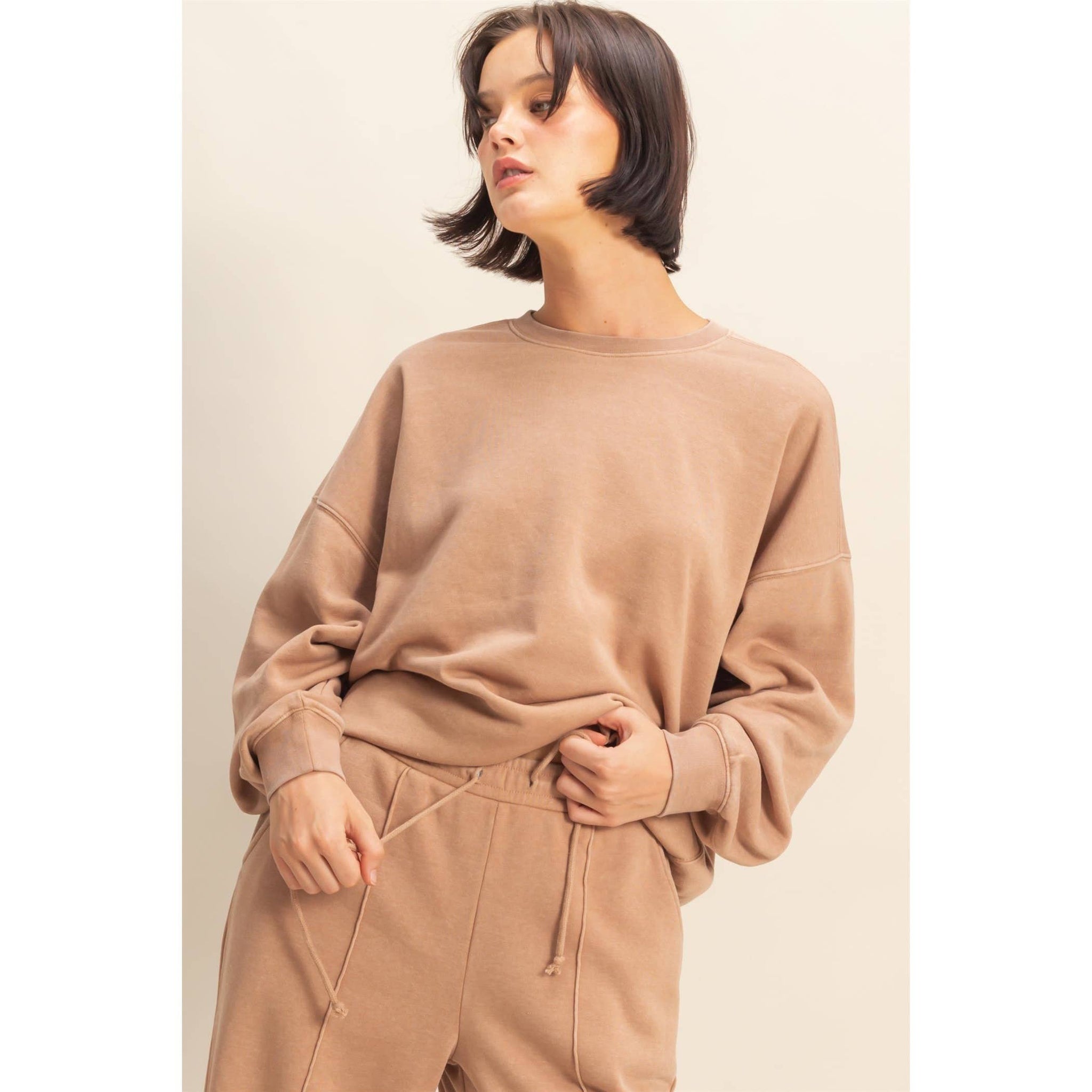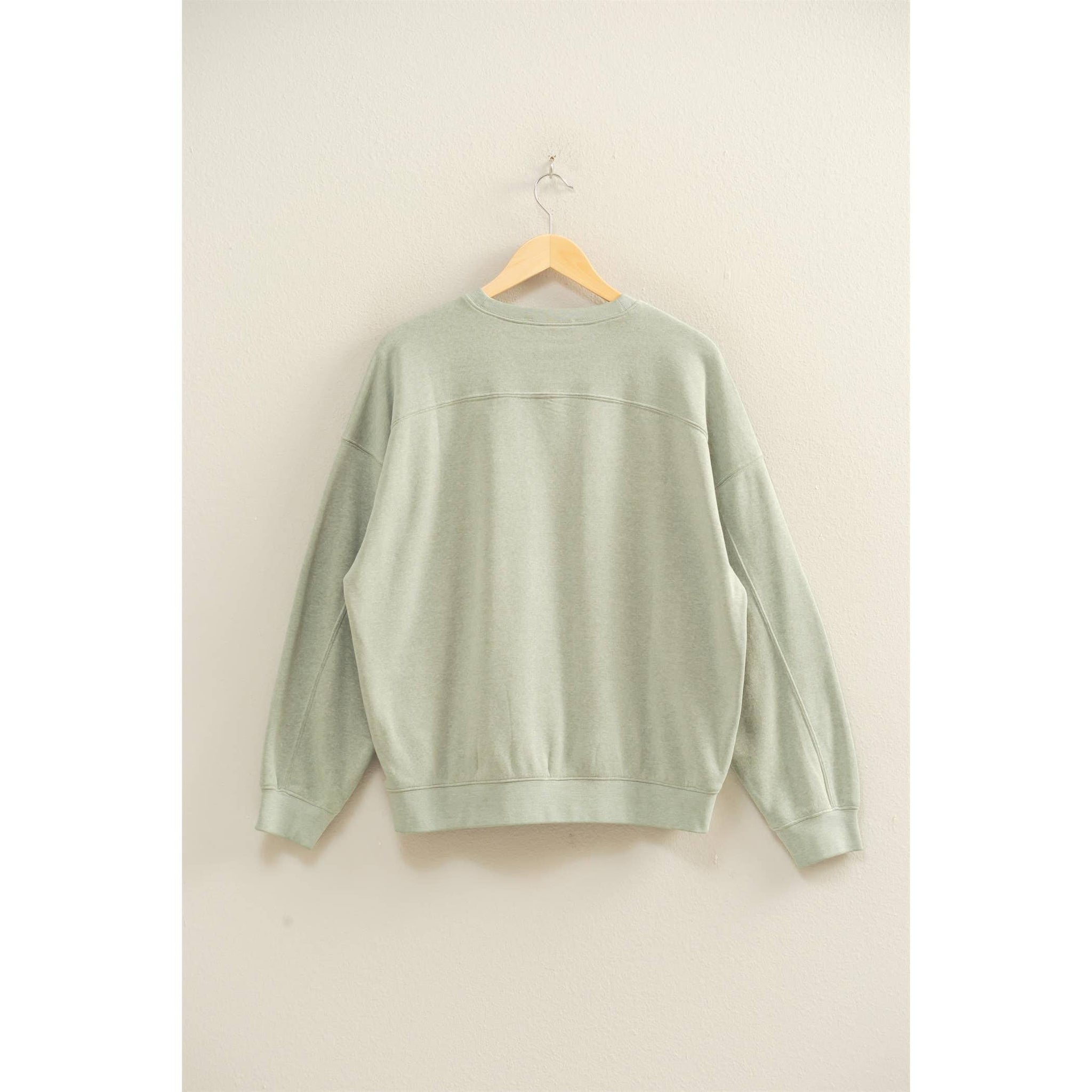 Start your day in a Clean Slate โ๏ธ This relaxed-fit crewneck has a laid-back silhouette with cinched cuffs + hem for a flattering shape. Soft sage green makes it an instant outfit maker โ pair it with your favorite joggers or throw it on with jeans for that effortless vibe ๐ต