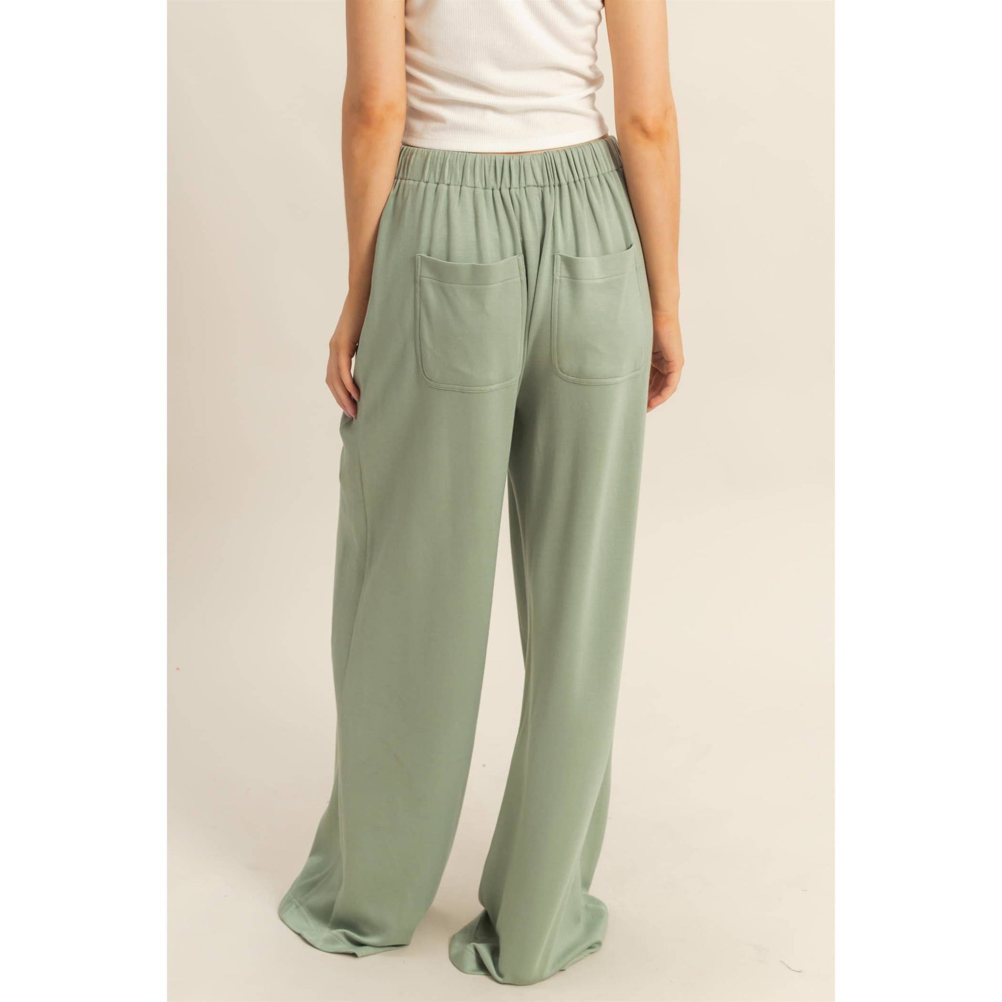 Your new go-to for calm mornings and polished evenings ✨ The Sereni-tea Trousers feature a flowing wide-leg silhouette in a soft sage green hue. With a sleek, unadorned finish and adjustable drawstring waist, these pants offer effortless comfort without sacrificing style.