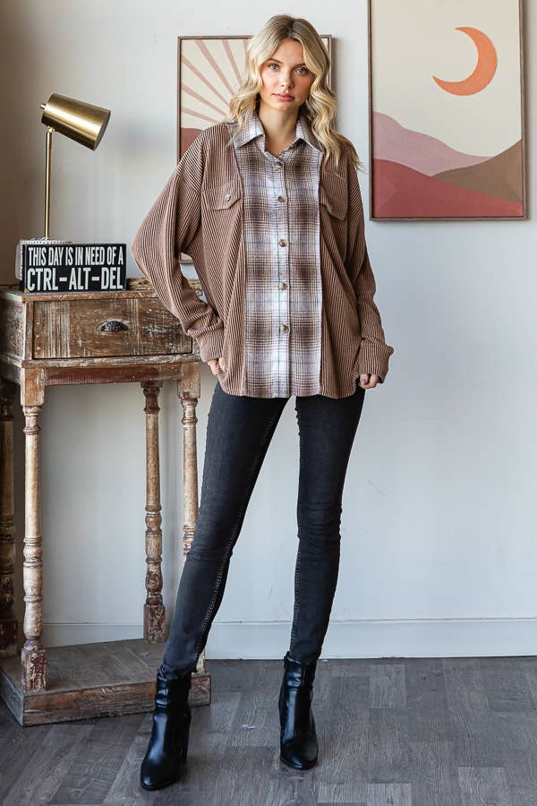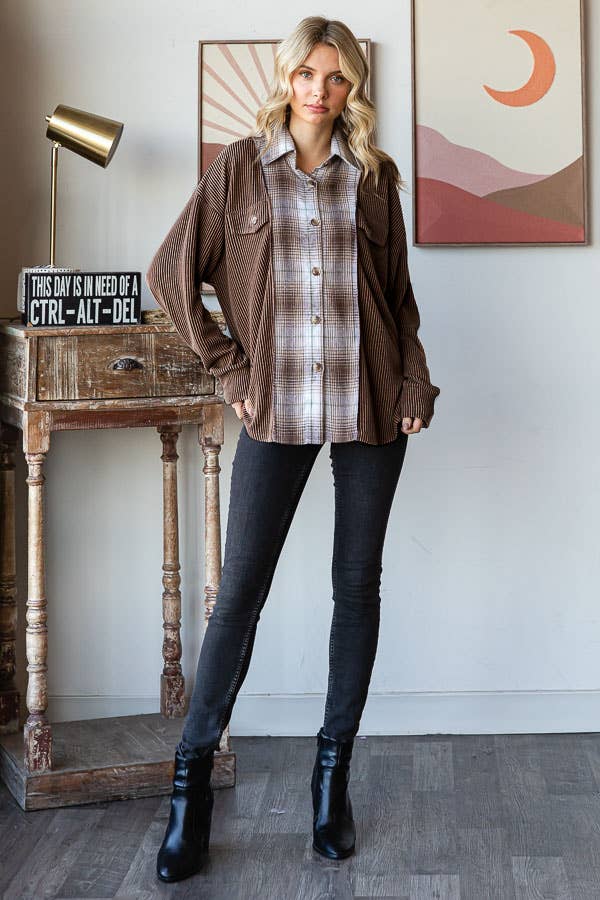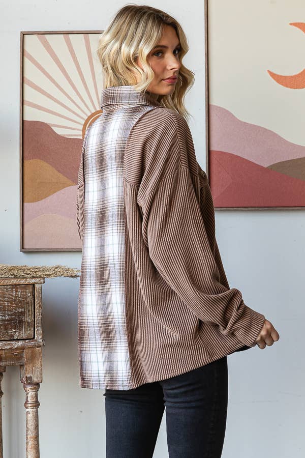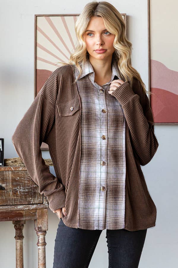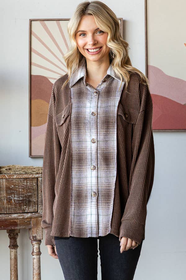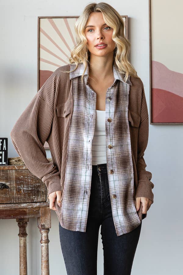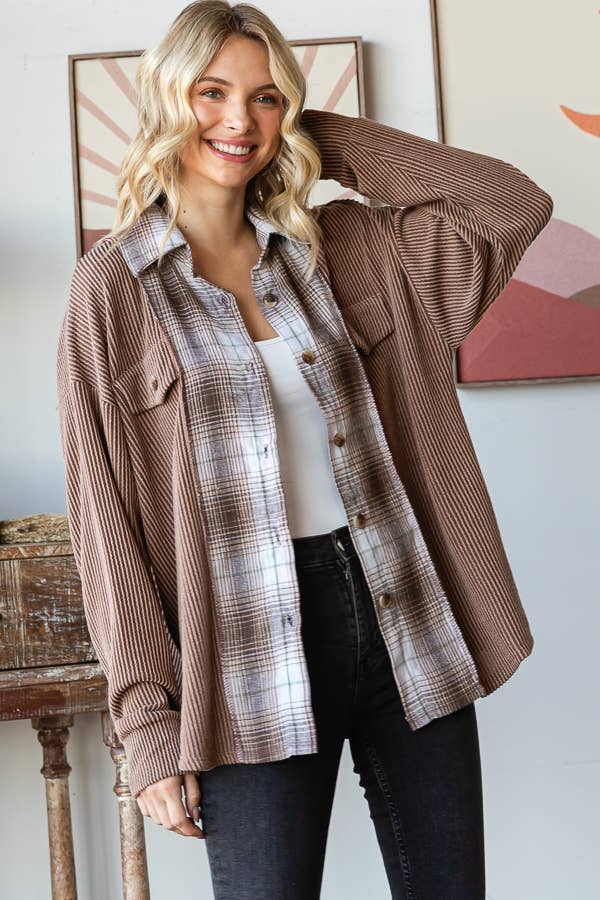 Meet the Campfire Cozy Shacket 🔥 This ribbed, chestnut-toned plaid is your new fall layering staple. With patchwork detail, drop shoulders, and a soft knit feel, each piece is totally unique — just like your style 🤎 Throw it over leggings, jeans, or lounge sets and head straight into sweater season.